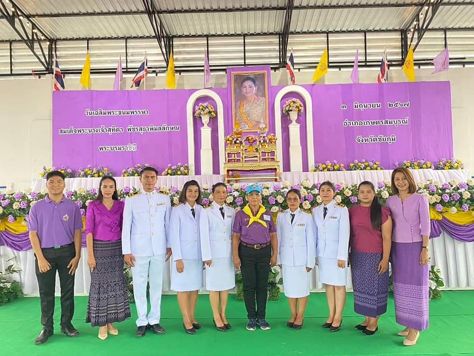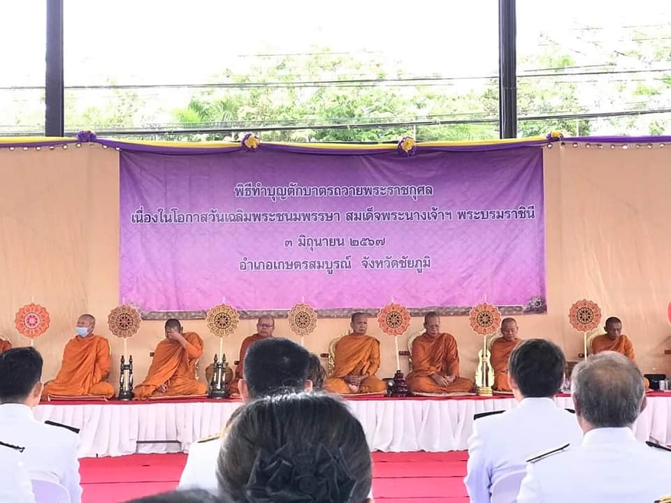 บุคลากร ศกร.ระดับตำบลโนนทอง เข้าร่วมพิธีทำบุญตักบาตรถวายพระราชกุศล เนื่องในโอกาสวันเฉลิมพระชนมพรรษา สมเด็จพระนางเจ้าสุทิดา พัชรสุธาพิมลลักษณ พระบรมราชินี ณ อาคารโดม หน้าที่ว่าการอำเภอเกษตรสมบูรณ์ โดยมีนายเสกสรร สวัสดิ์ศรี นายอำเภอเกษตรสมบูรณ์ เป็นประธานในพิธี วันที่ 3 มิถุนายน 2567